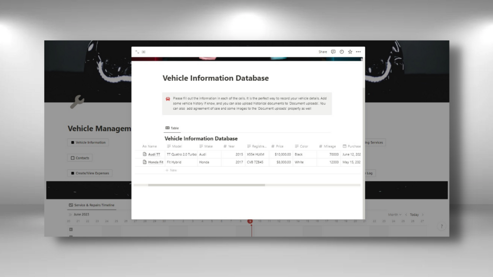 The Vehicle Management Template is the perfect way to keep your vehicles running smoothly and efficiently. It's easy to use, powerful, and packed with features that will help you take care of your fleet.
