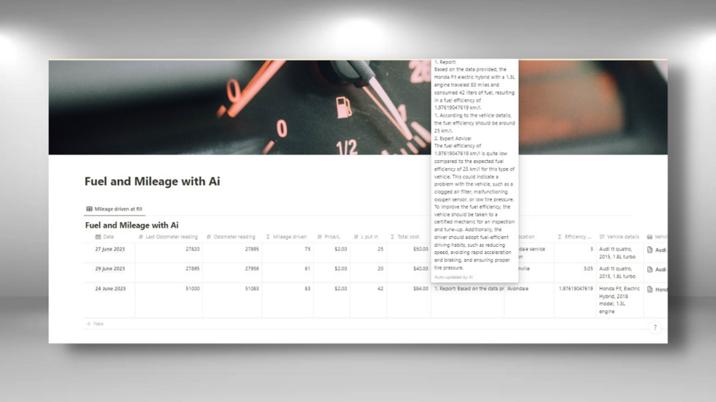 - AI-powered fuel efficiency reports that help you track your fuel usage and identify ways to improve your efficiency.