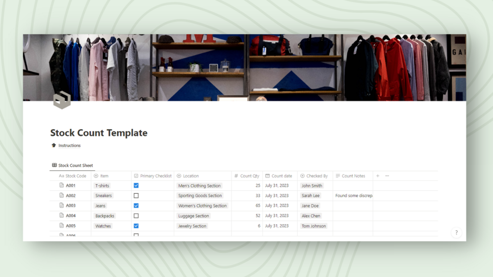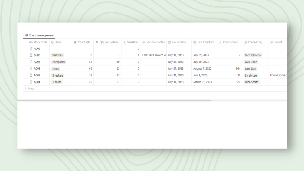 Stock Count Notion Template